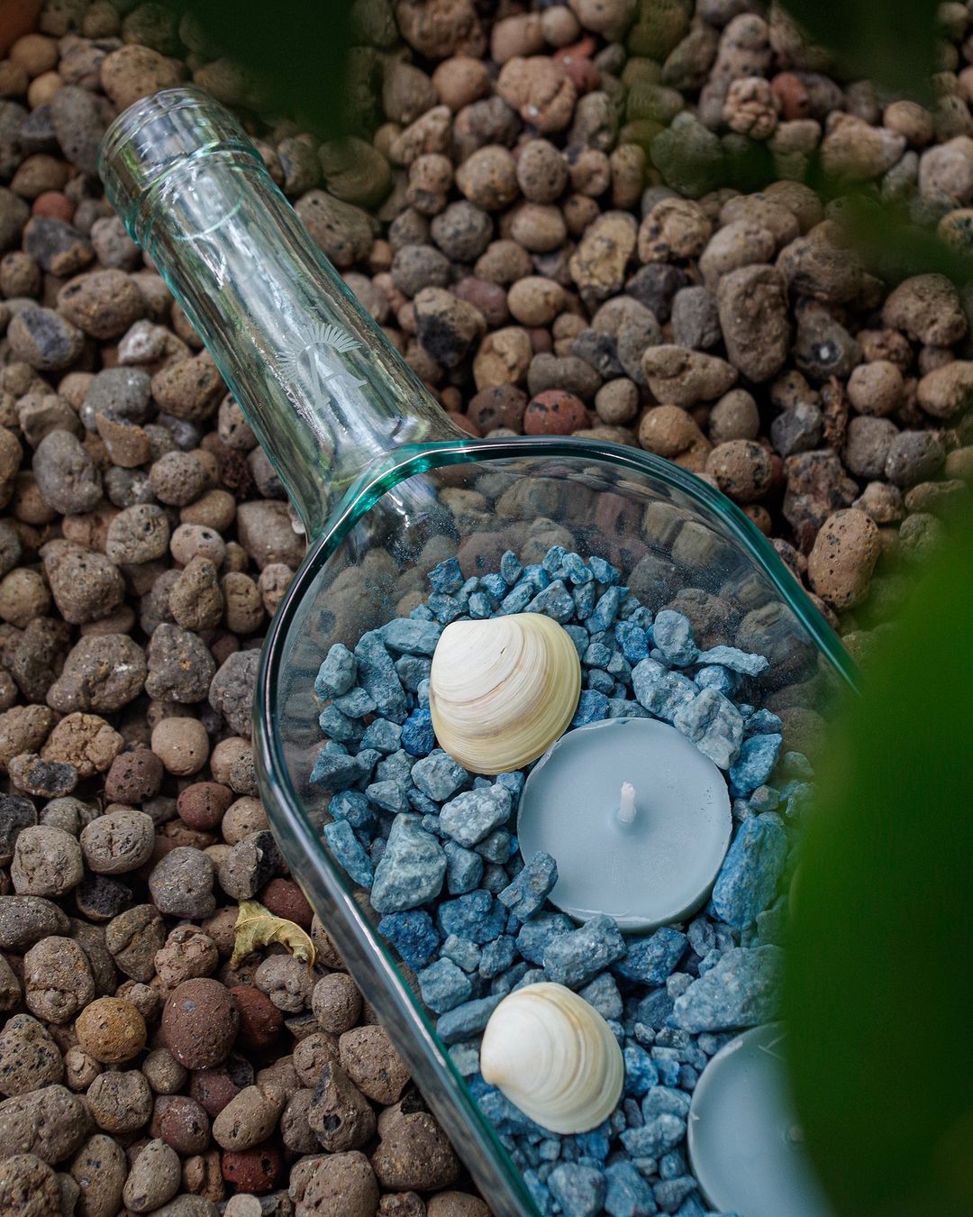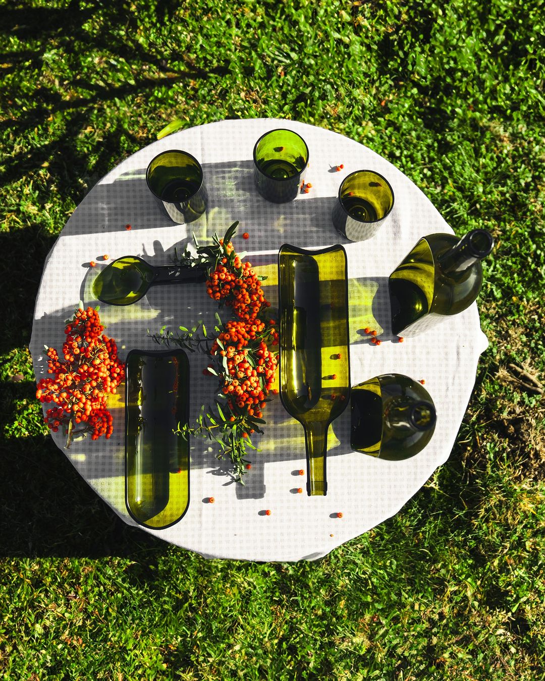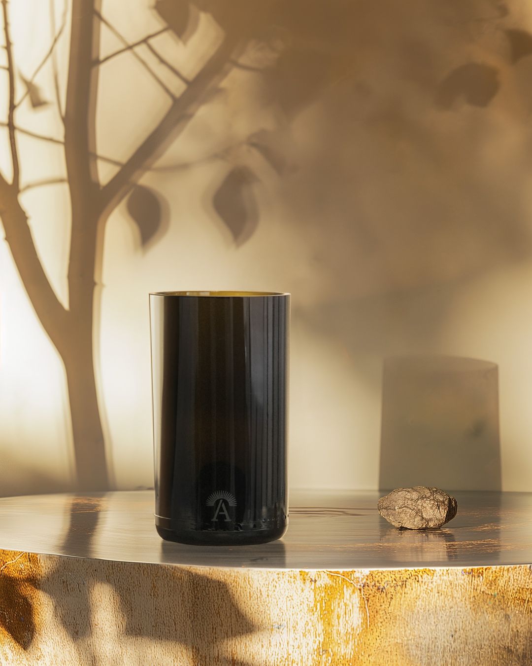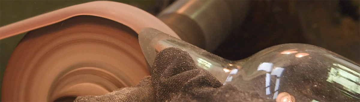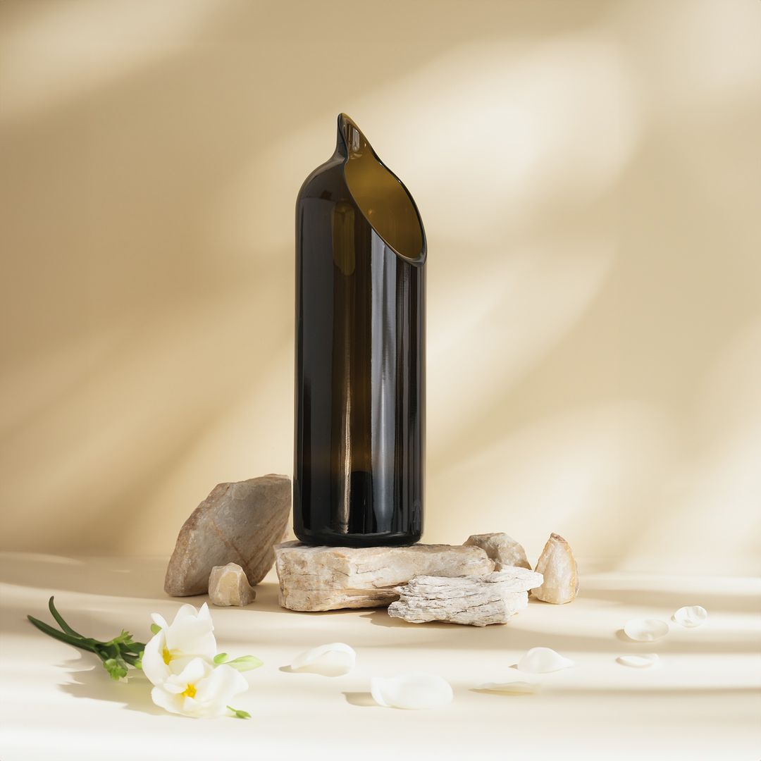 Ogni bottiglia raccolta viene trasformata attraverso un processo artigianale che evita la rifusione del materiale, riducendo il consumo energetico e mantenendo la memoria della forma originaria.
